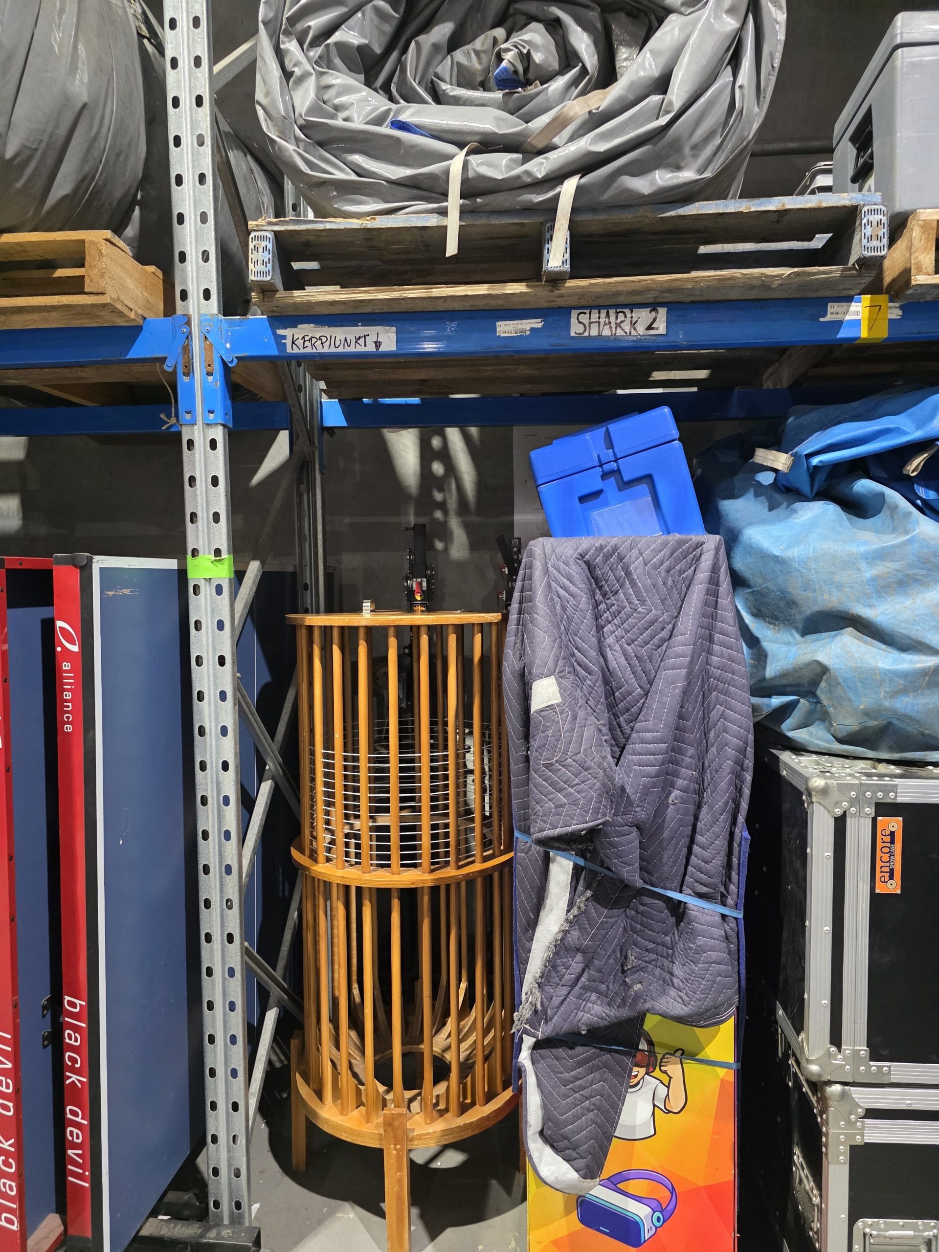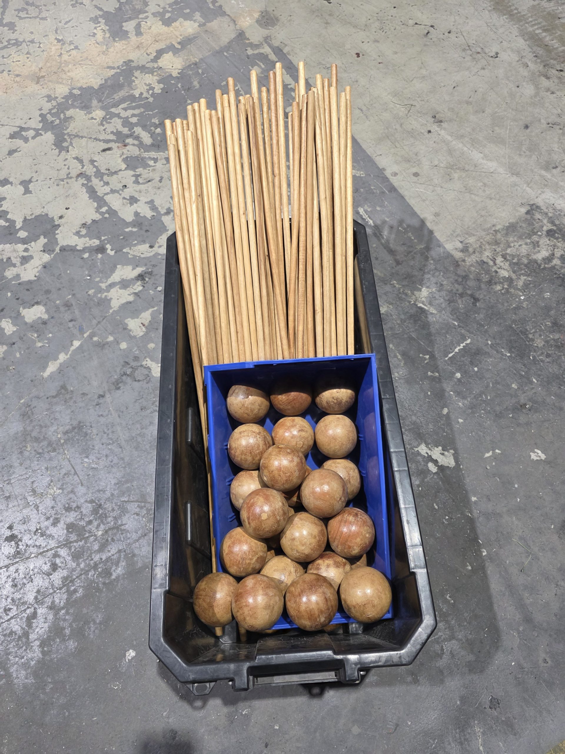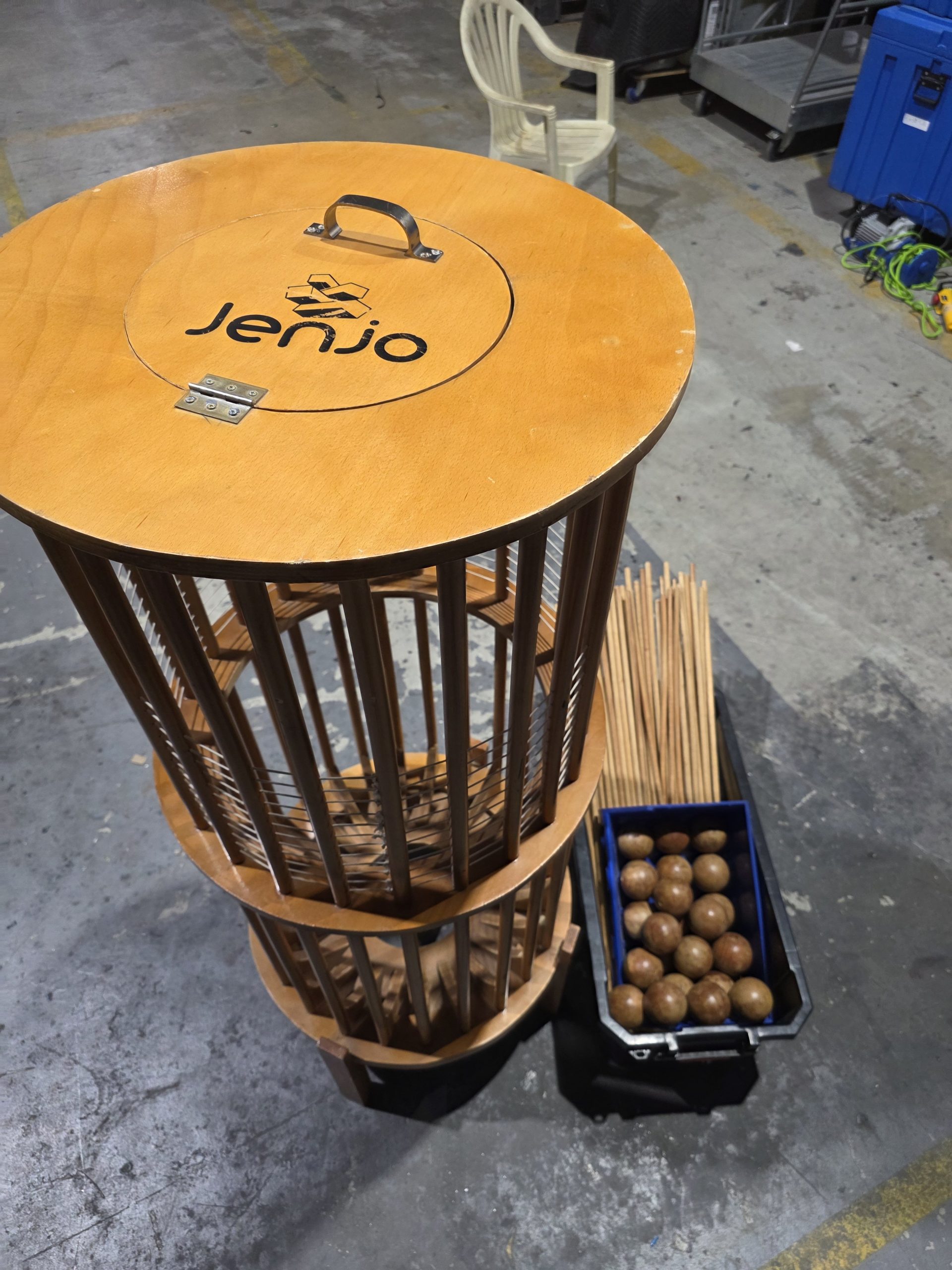 main stand, bucket with balls and sticks
