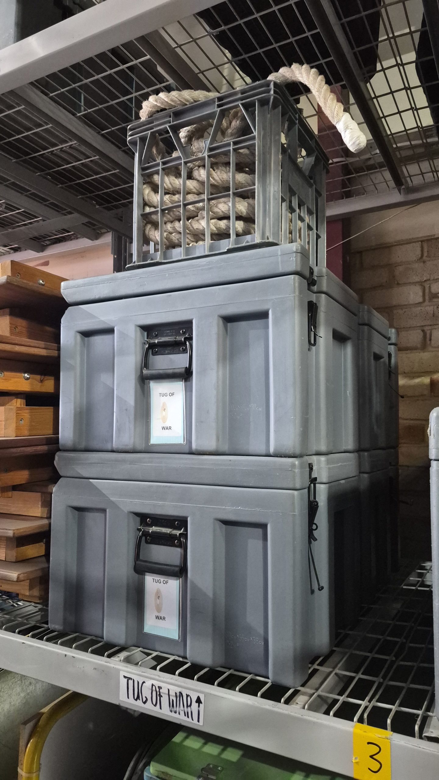 one milk crate, 2 grey pelican crates